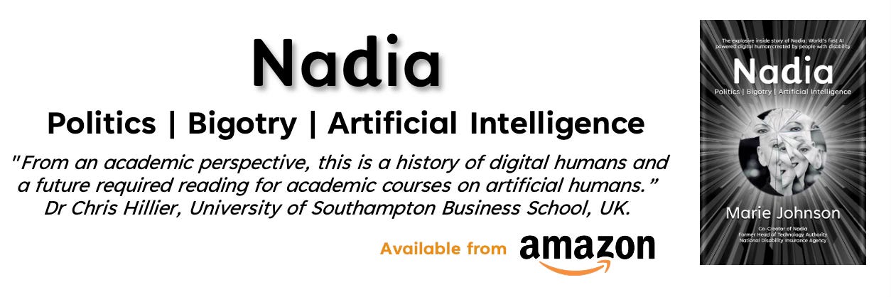 So seven years ago, we documented the concept of the “AI Embodiment Exchange”, based on my commercial proprietary MBA research in 1998 at the Melbourne Business School “The Information Exchange”. I talk about the Information Exchange in my book “Nadia: Politics | Bigotry | Artificial Intelligence”.
